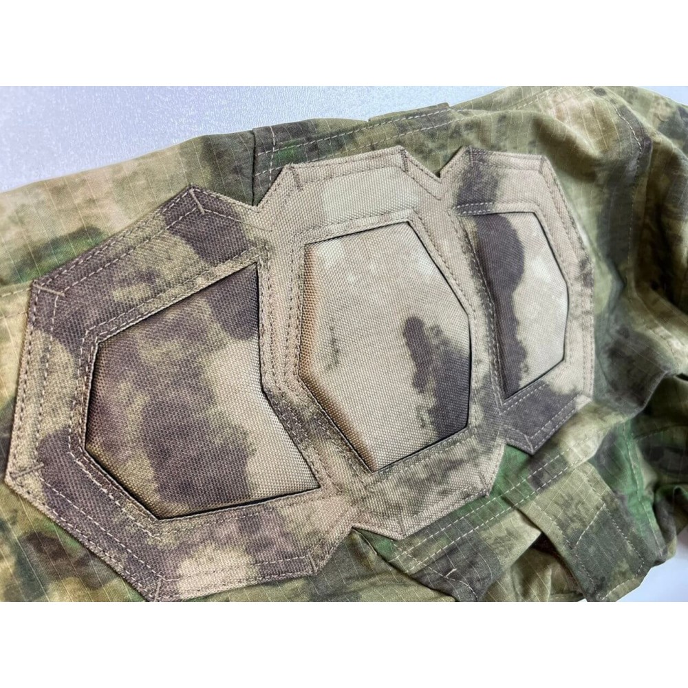 - Брюки: Брюки имеют боковые карманы на молнии и широкие ременные петли, позволяющие использовать тактические ремни различных размеров. Поясной элемент оборудован усиленной фиксирующей стропой на велкро. Нижняя часть штанины застегивается на молнию, а также имеет клапан. Карго-карманы на набедренных частях и тыльные карманы обеспечивают удобство носки и хранения мелочей.