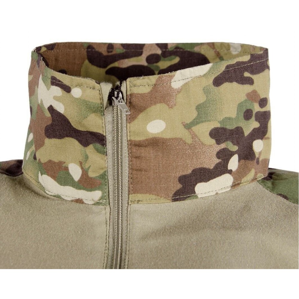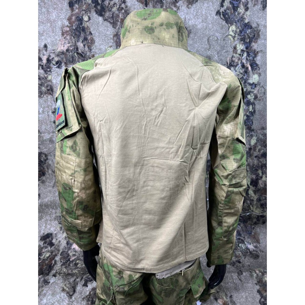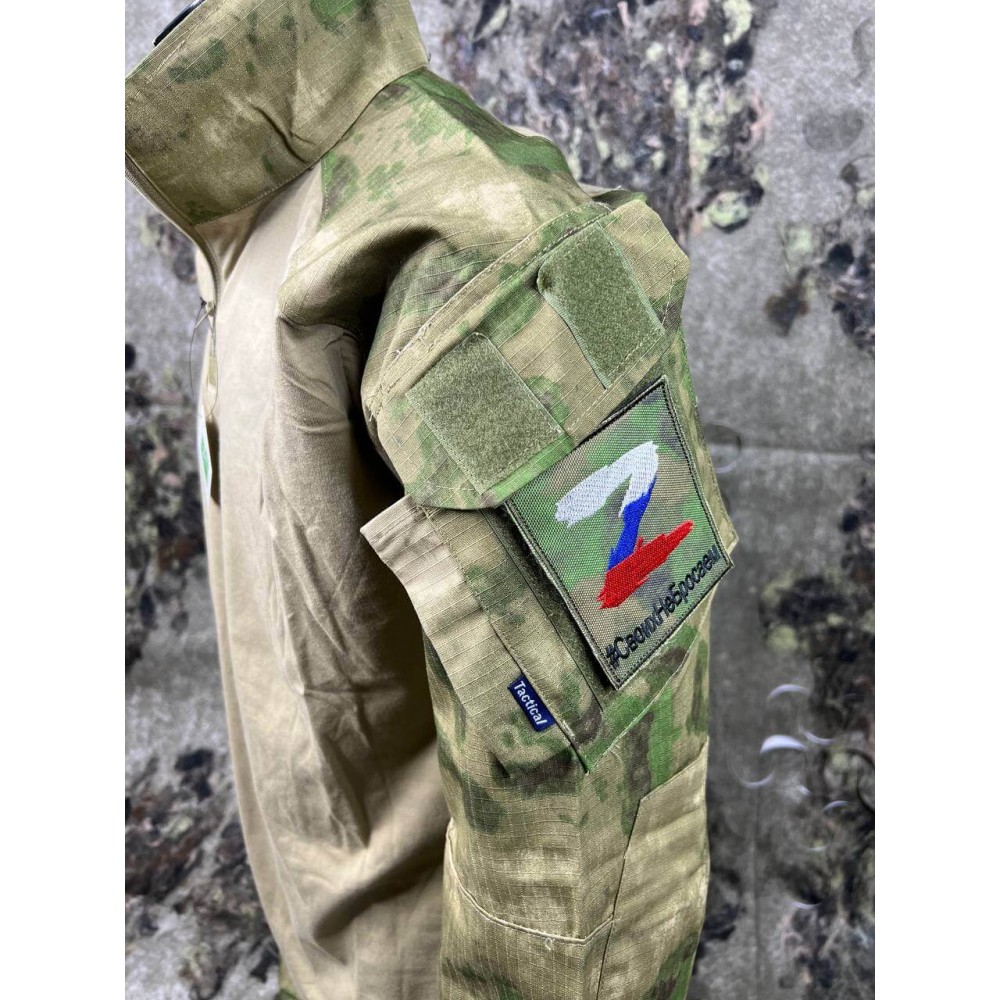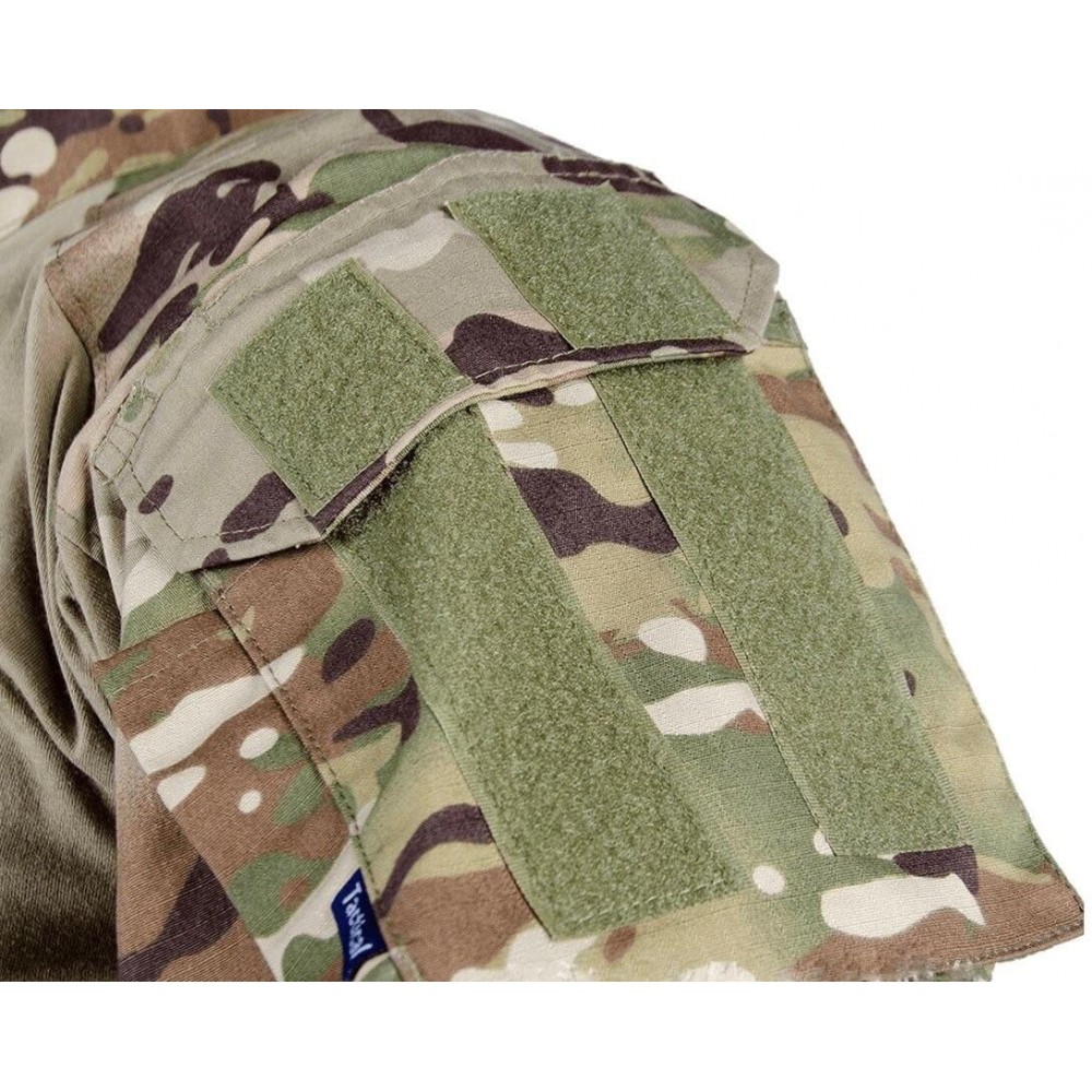 Рубаха удобного кроя, не стесняющего движений, изготовлена из 2-х типов тканей: износостойкой RipStop (воротник и рукава - 65% полиэстер, 35% хлопок). Камуфляжная рубаха имеет 2 удобных, накладных нарукавных кармана с местом под патч, съемные налокотники и регулируемые нарукавные манжеты на тактильных застежках Velcro. Брюки изготовлены из ткани RipStop (65% полиэстер, 35% хлопок). С помощью застежек на ленте (Velcro, липучках) можно отрегулировать размер талии, полноту штанин и ширину нижних манжет.