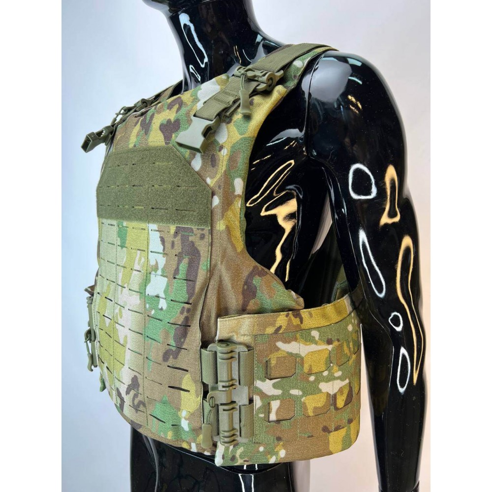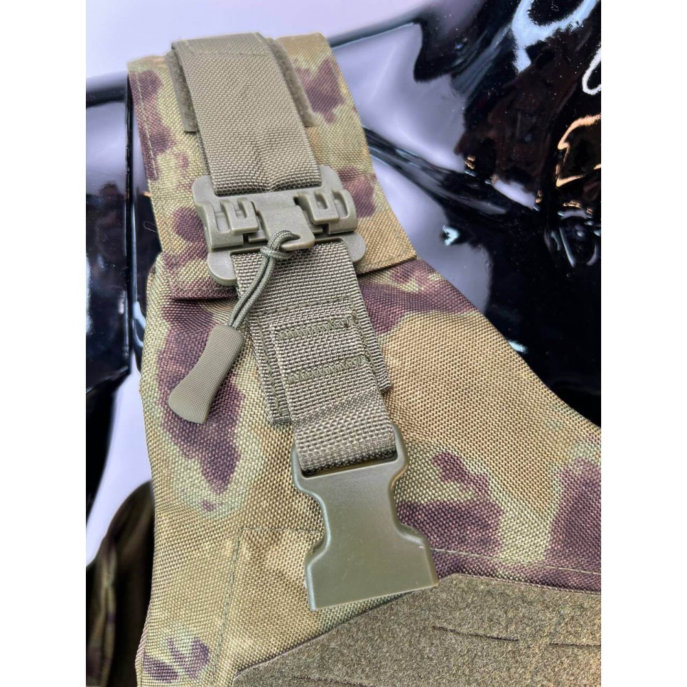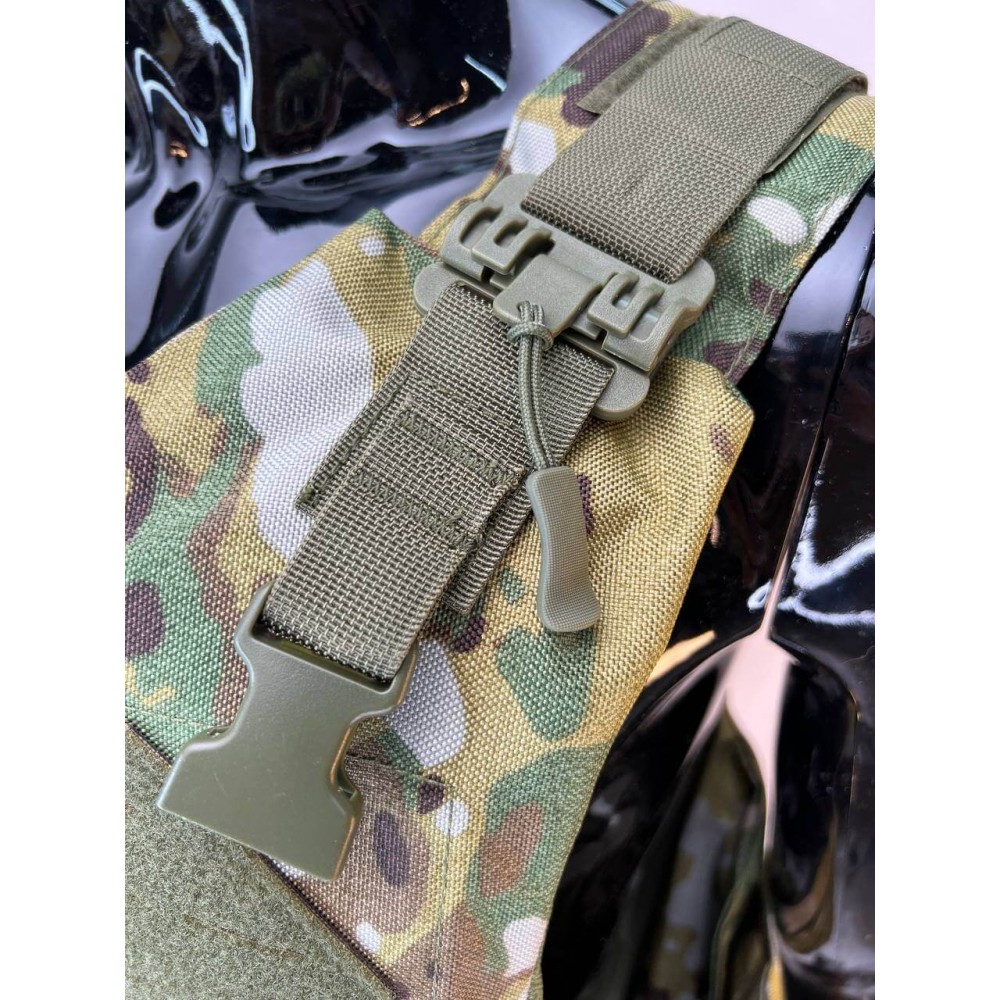 - Бронежилет из Оксфорда 1000d: Внешний чехол бронежилета выполнен из прочной ткани Оксфорд 1000d, обеспечивая износостойкость и водостойкость. Чехол также оснащен системой "MOLLE" для размещения дополнительного снаряжения.