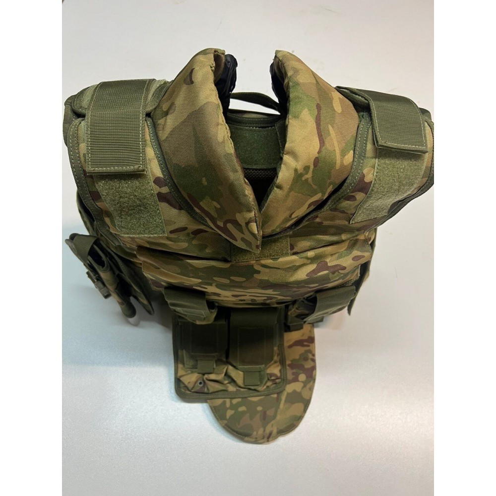Бронежилет обеспечивает полную защиту благодаря своему баллистическому пакету, который включает переднюю, заднюю, боковую, паховую зоны и шею. Он изготовлен из прочной ткани Оксфорд 900D и состоит из 45 слоев баллистической ткани из полиэтиленовых волокон, обеспечивая высокую степень защиты от различных угроз.
