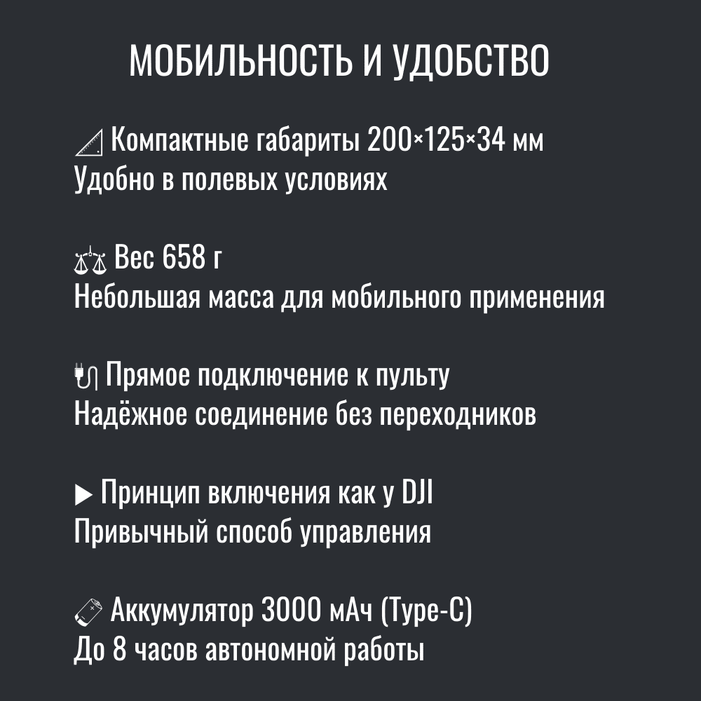 Если вы ищете компактный и эффективный усилитель сигнала для квадрокоптера — Инкубрёнок станет правильным выбором. Он объединяет мобильность, удобство и стабильность связи, что делает его идеальным аксессуаром для DJI, Autel и UCO.
