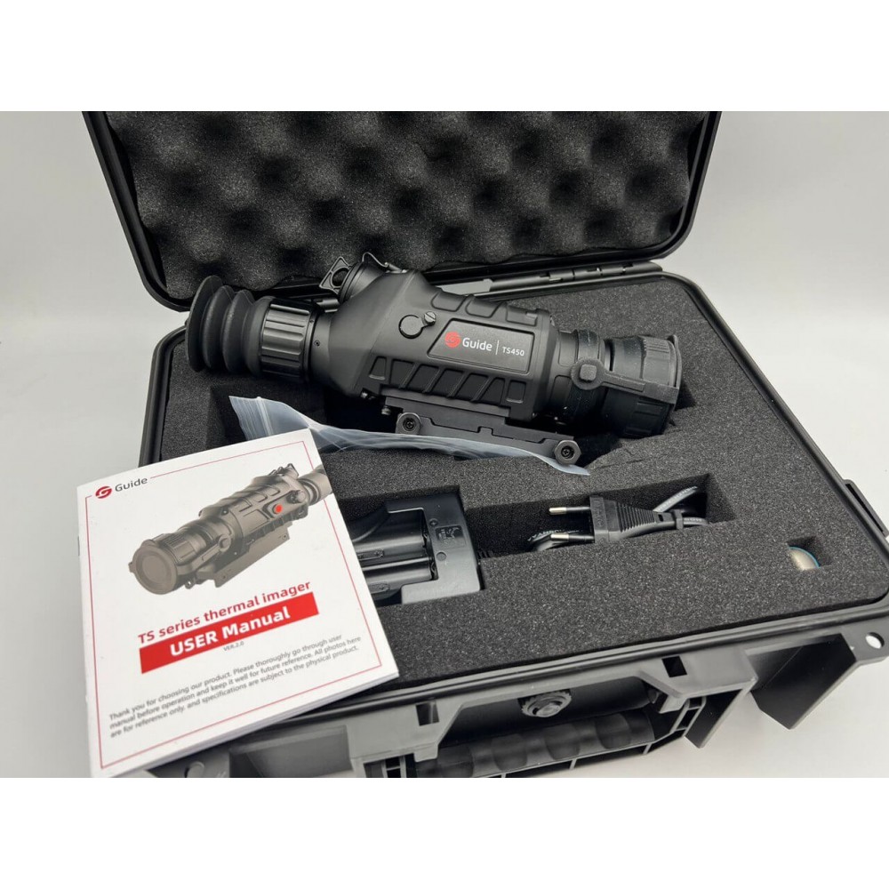 Тепловизионный прицел Guide TS450 представляет собой высокотехнологичный оптический инструмент, разработанный для целевой стрельбы на средние и большие дистанции из огнестрельного оружия, оборудованного посадочным местом Picatinny. Он предназначен для использования как в условиях ночной охоты, так и в случаях ограниченной видимости, таких как туман, дождь или темнота. С данным прицелом возможно точное обнаружение и наблюдение животных и целей на расстоянии до 1400 метров.